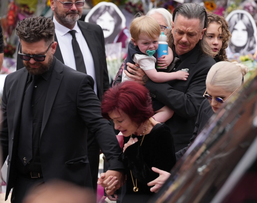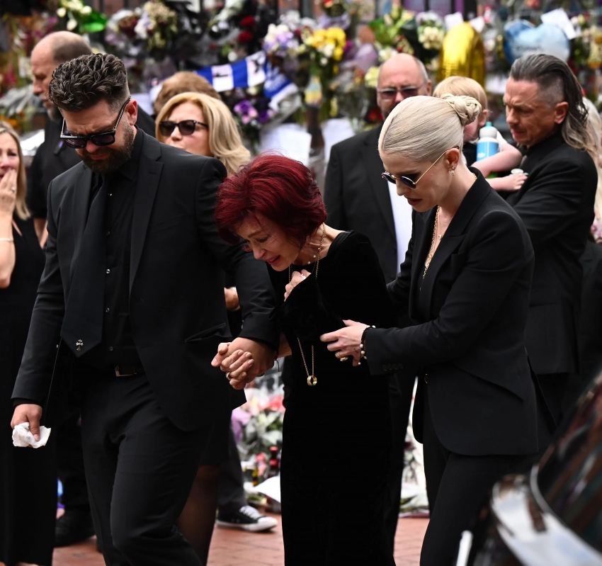 72-летняя Шэрон Осборн держала за руки 40-летнюю дочь Келли и 39-летнего сына Джека, направляясь к мосту Black Sabbath в Бирмингеме, где фанаты артиста создали мемориал. На прощании также была старшая непубличная дочь Оззи и Шэрон, 41-летняя Эми, возлюбленный Келли, 48-летний участник группы Slipknot Сид Уилсон с их сыном Сидом, и другие родственники.