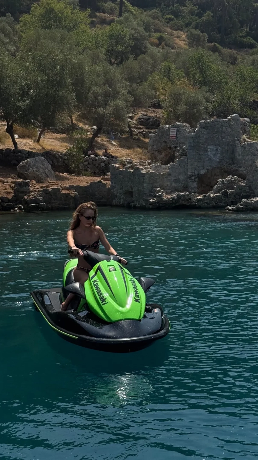 Она попозировала в бикини, стоя в воде на фоне скал, и показала, как катается на водном мотоцикле. Пост лайкнула сводная сестра Александры Елизавета Пескова.