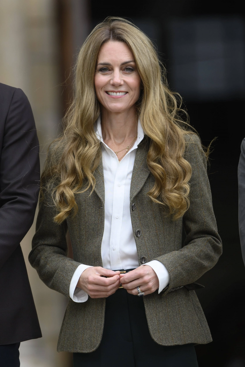 Кейт появилась перед фотографами в белой рубашке, шерстяном жакете и с нетипичной для неё объёмной укладкой. В сети уже начали обсуждать — натуральные это волосы принцессы или парик, ведь раньше её локоны не отличались такой густотой и она практически никогда не меняла их оттенок. По слухам, Кейт может носить парик из-за рецидива рака, на фоне которого она якобы резко похудела.