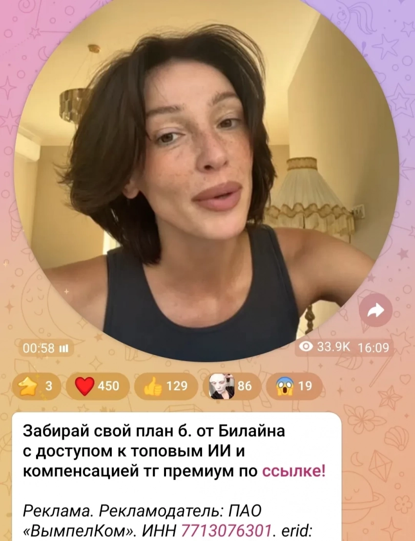 В своём новостном телеграм-канале 34-летняя блогерша опубликовала новое видео, в котором рассказала о новом тарифном плане "Билайн" с доступам к ChatGPT и DeepSeek. "Это технологичный помощник, созданный для поддержки молодого поколения, то бишь нас. Да, я — молодёжь", — заявляет Настя в ролике, который вышел с пометкой о рекламе.