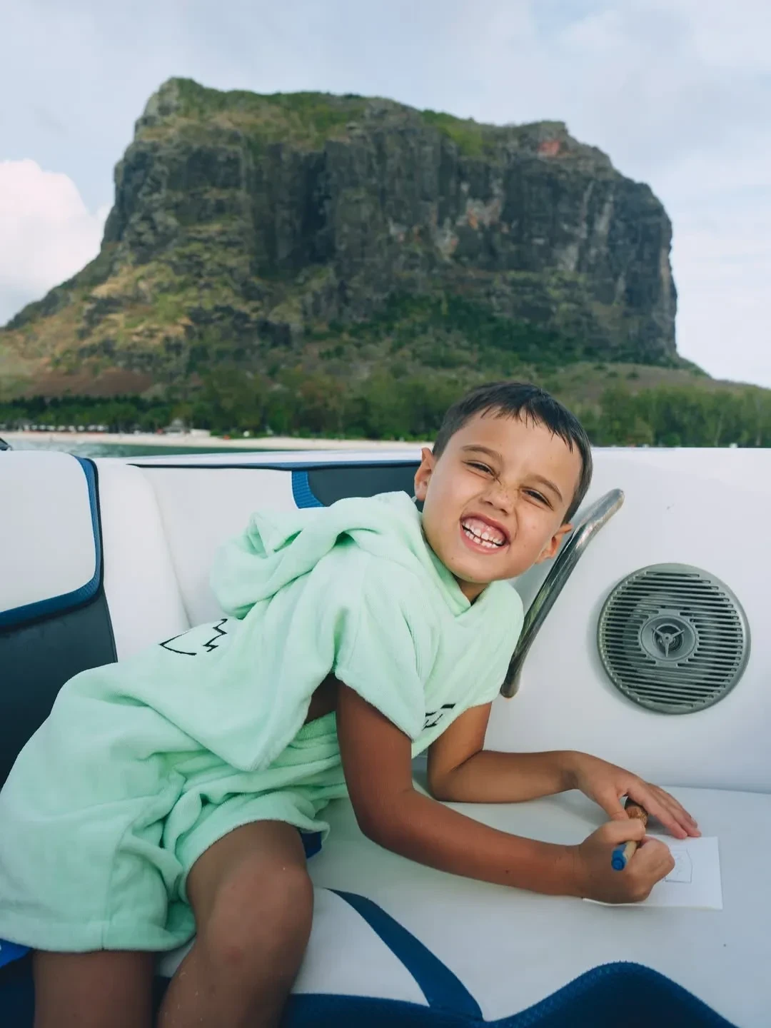 В своём инстаграме* 42-летний Тимати выложил снимки, на которых запечатлено, как он гуляет по Маврикию с переноской с трёхмесячной Эммой в одной руке и сёрфом в другой. На одном из снимков видно, что он взял с собой на морскую прогулку шестилетнего Ратмира.
