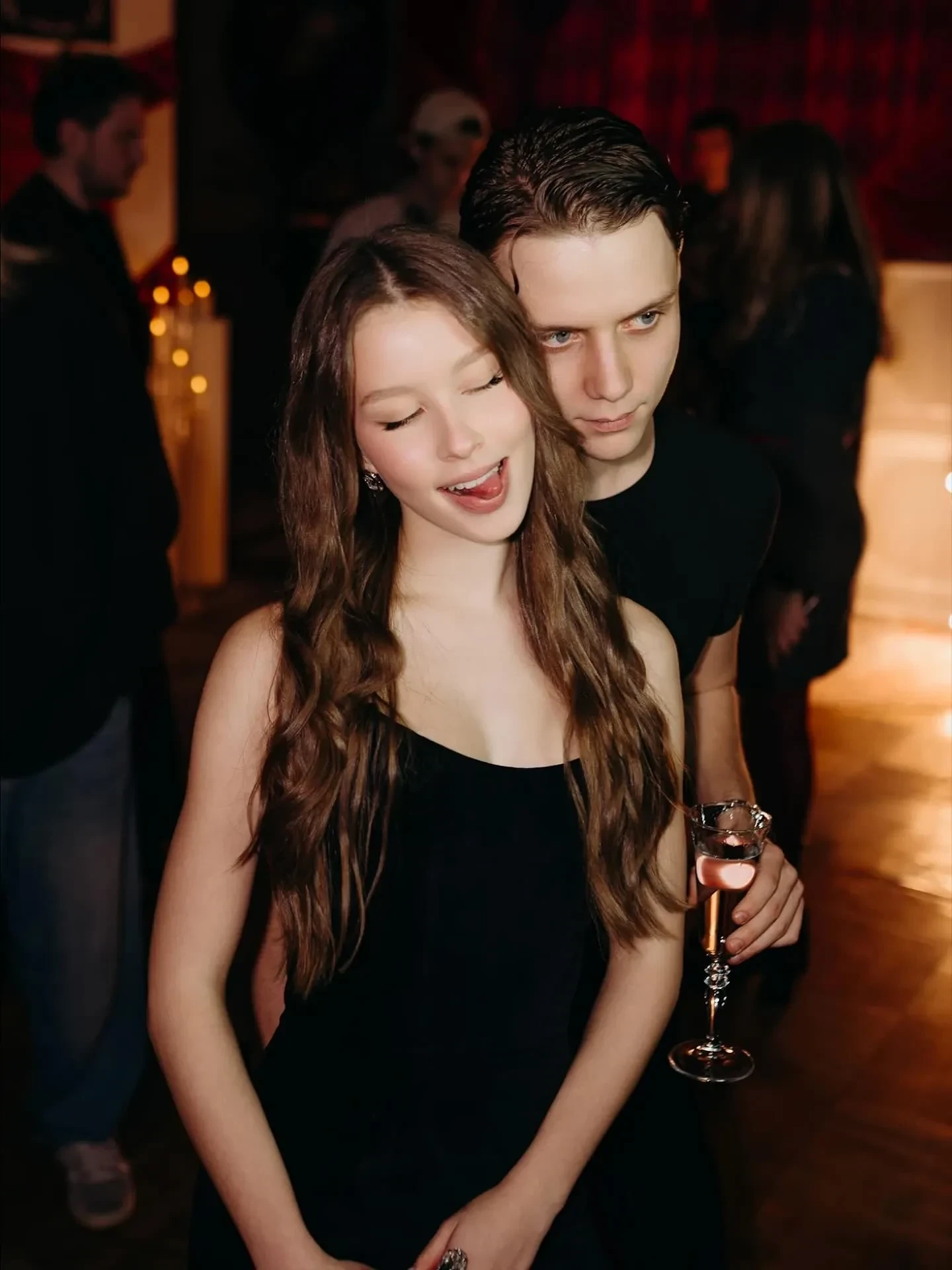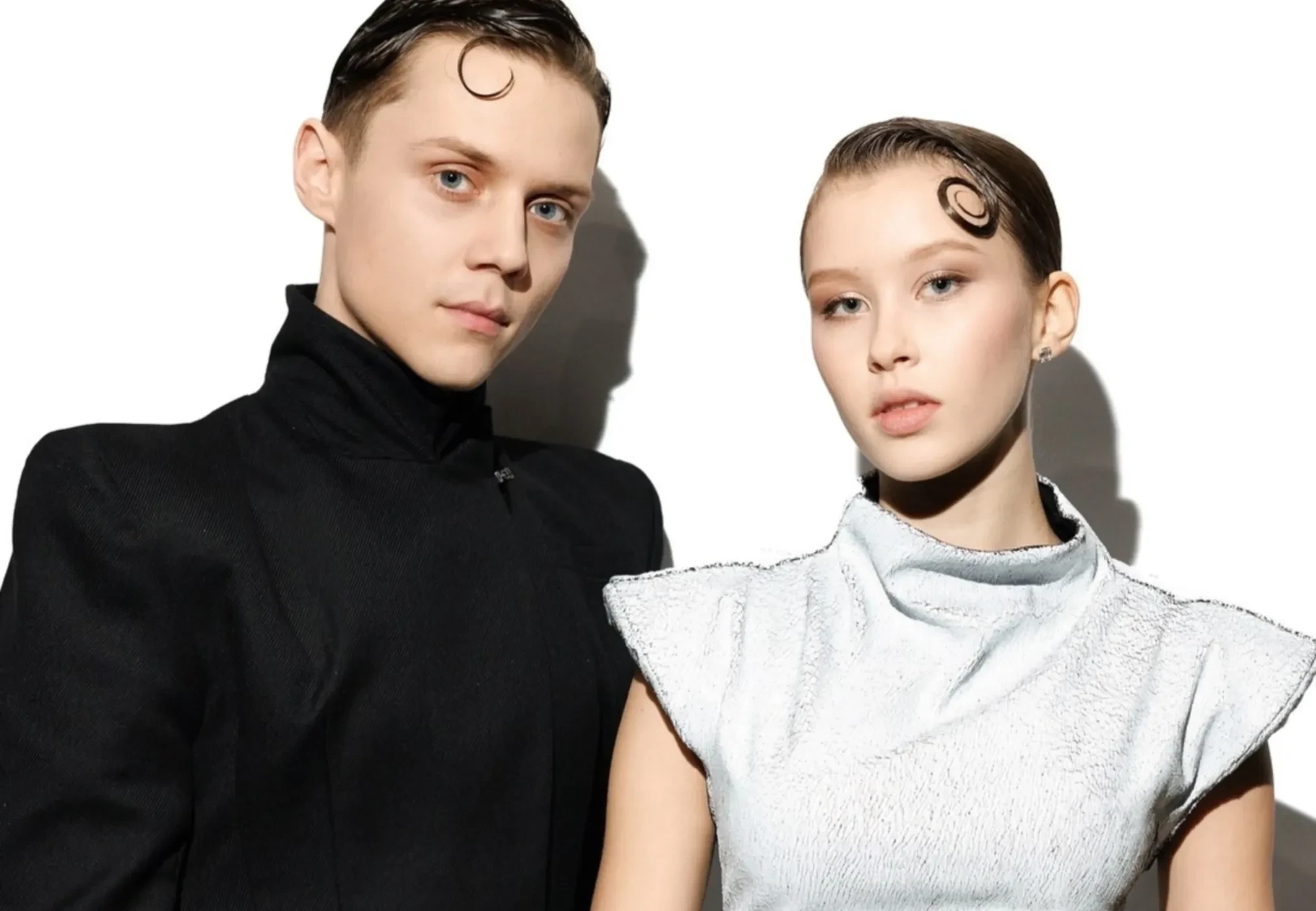 На фото, опубликованном в соцсетях марки, старшая дочь актрисы Юлии Пересильд и режиссёра Алексея Учителя позирует в белом футуристичном платье с подчёркнутыми плечами и бедрами, а её 20-летний бойфренд — в чёрном костюме в стиле джапанди. Завершает образ пары одинаковая "мокрая" укладка. Примечательно, что в этих же нарядах Анна и Ваня накануне появились в программе Павла Воли "Шоу Воли", где исполнили свою совместную песню "Силуэт" из фильма "Алиса в Стране чудес", в котором Анна сыграла главную роль.