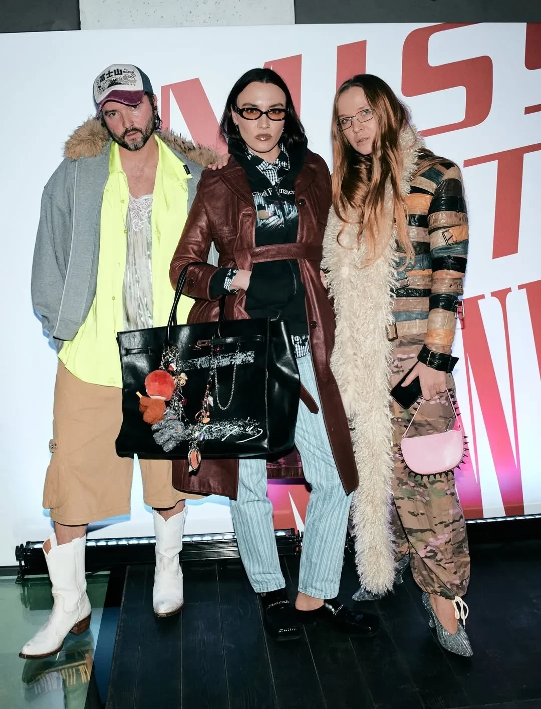 Большинство звёздных гостей нарядились в образы в стиле нулевых и отпраздновали открытие одного из пяти в мире поп-апа, в котором будет представлена совместная коллекция брендов Miss Sixty и KNWLS. Ольга Карпуть нарядилась в костюм из кожи, а Глюкоза позировала в джинсовой куртке и сапогах с мехом, дополнив образ ярким макияжем.