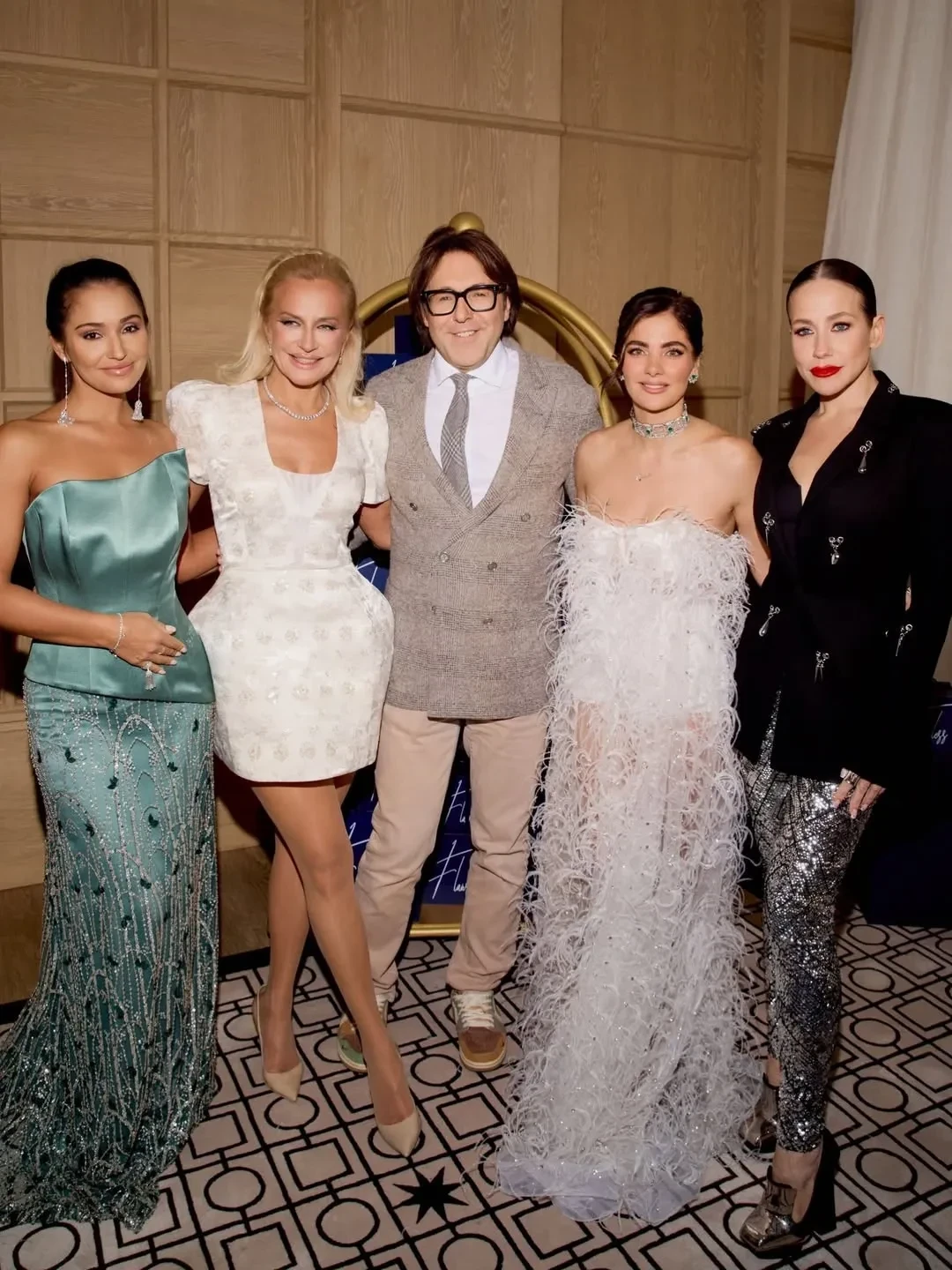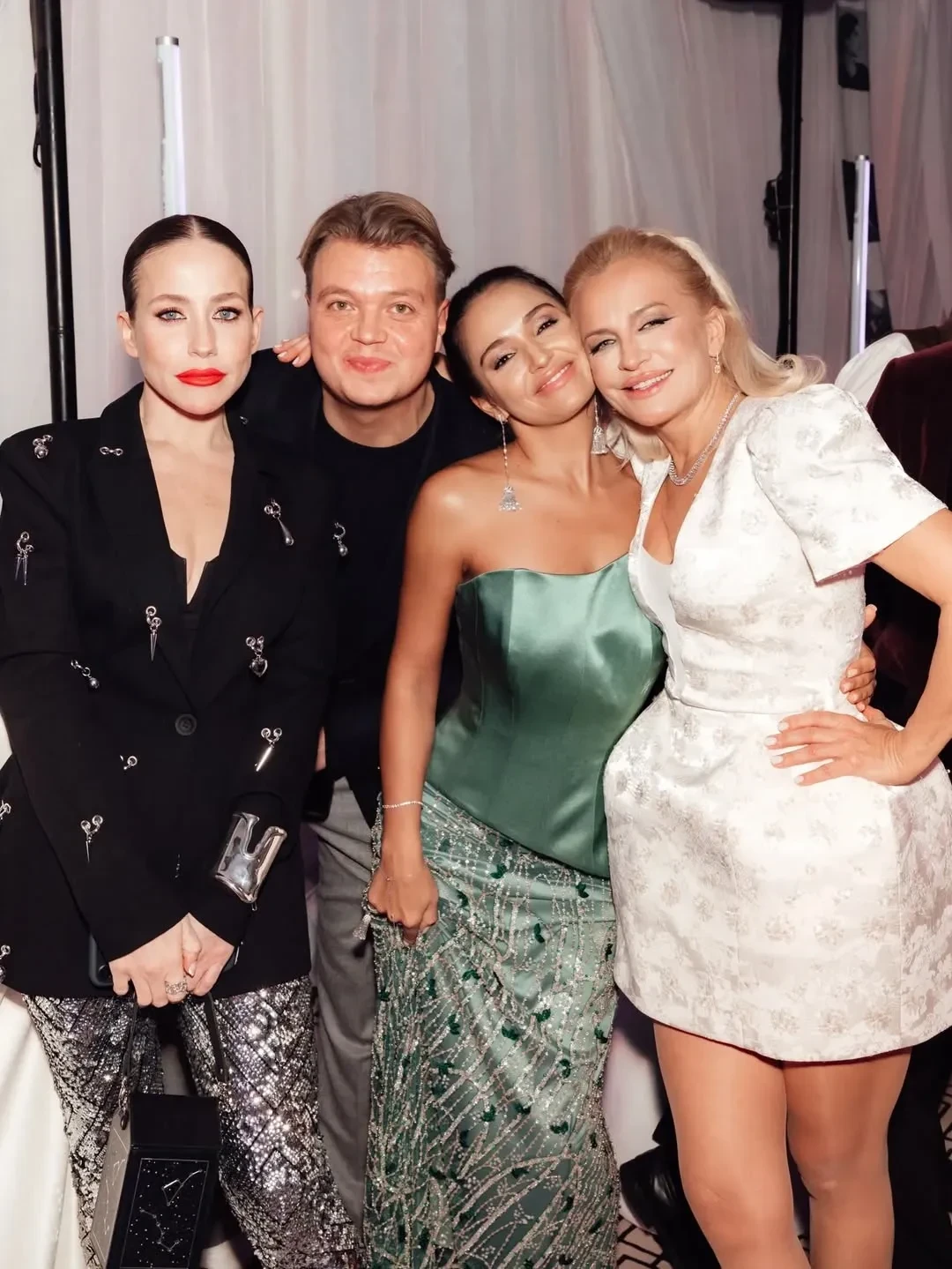 Андрей Малахов, Юлия Барановская, Кристина Потупчик и Мария Мельникова на новогодней вечеринке Виктории Шеляговой