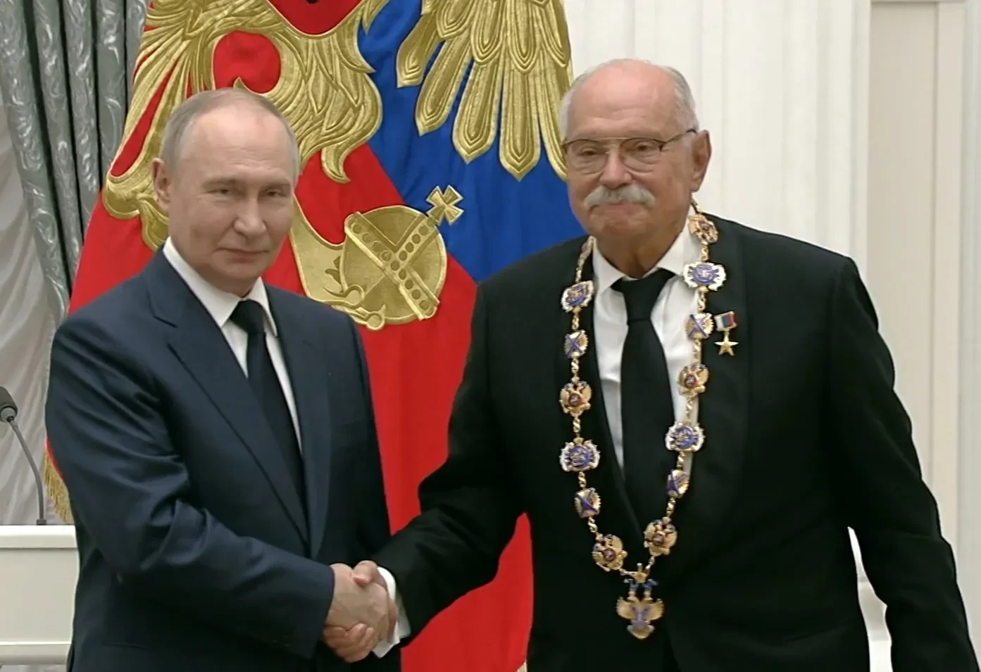 80-летний Михалков был удостоен ордена Святого апостола Андрея Первозванного "за выдающиеся заслуги в развитии отечественной культуры и кинематографа". 50-летняя Канделаки получила из рук Путина орден Александра Невского — как стало известно ранее, "за вклад в развитие средств массовой информации".