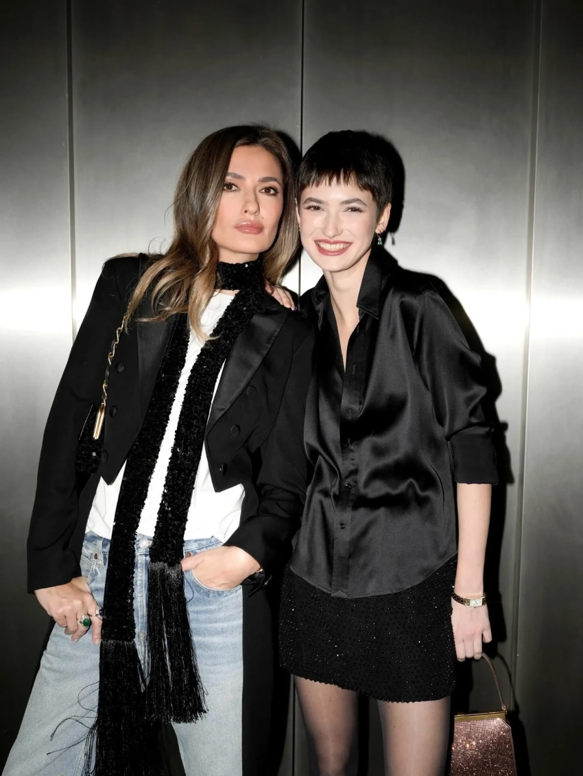 Для съёмки мама и дочь выбрали разные, но перекликающиеся наряды: Георгиева была в белой футболке, укороченном смокинге и джинсах, а Софья — в чёрной шёлковой рубашке и мини-юбке с пайетками. "Матушка соскучилась и затискала", — написала светская львица под публикацией.