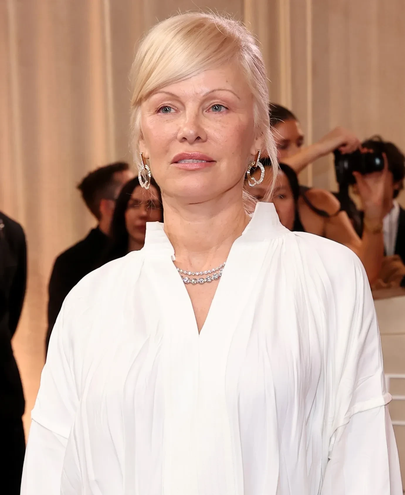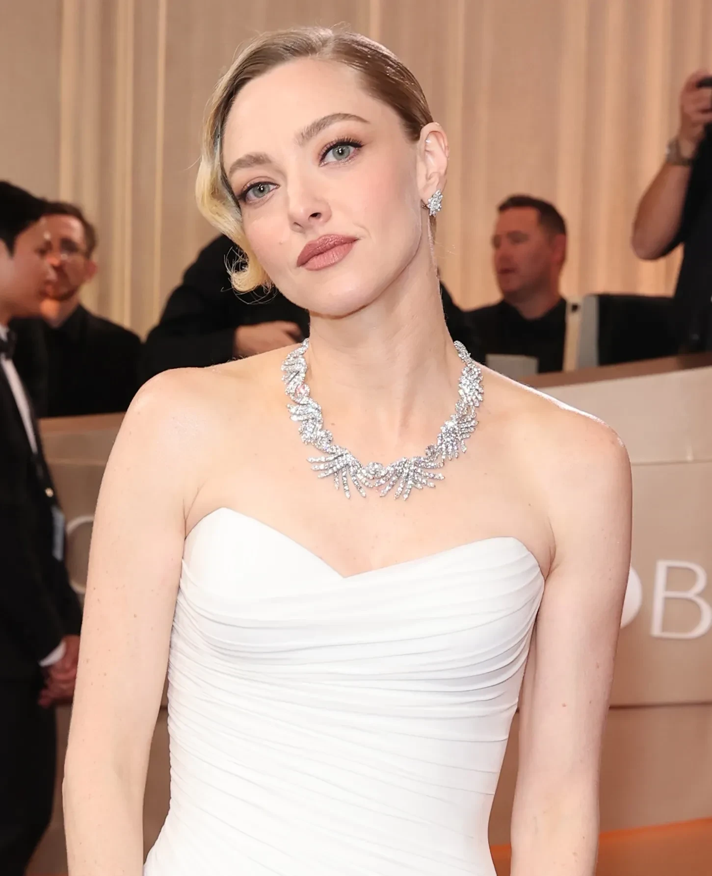 Зои КравицНа дорожке также замечены несколько модных образов в белом цвете. 58-летняя Памела Андерсон позировала в рубашке и юбке-макси от Ferragamo, а Аманда Сейфрид выбрала беспроигрышный вариант — классическое платье от Versace без бретелей, которое она дополнила колье и серьгами с бриллиантами. 42-летняя Эмили Блант блистала в лаконичном платье Louis Vuitton.