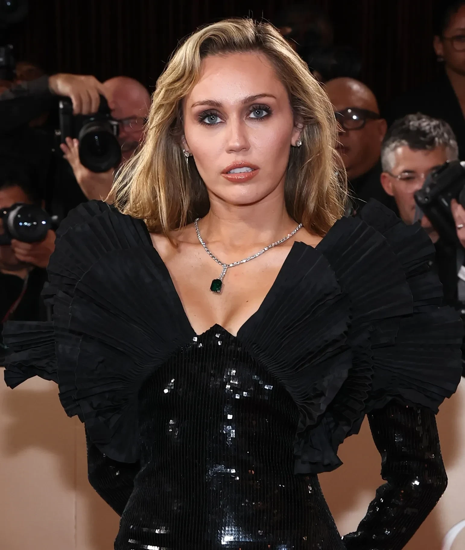 Майли Сайрус заслуженно попала в список самых удачных образов за выход в платье Saint Laurent с пайетками c "небрежной" укладкой, а Кирстен Данст завершает список своим тёмно-зелёным нарядом от Tom Ford.
