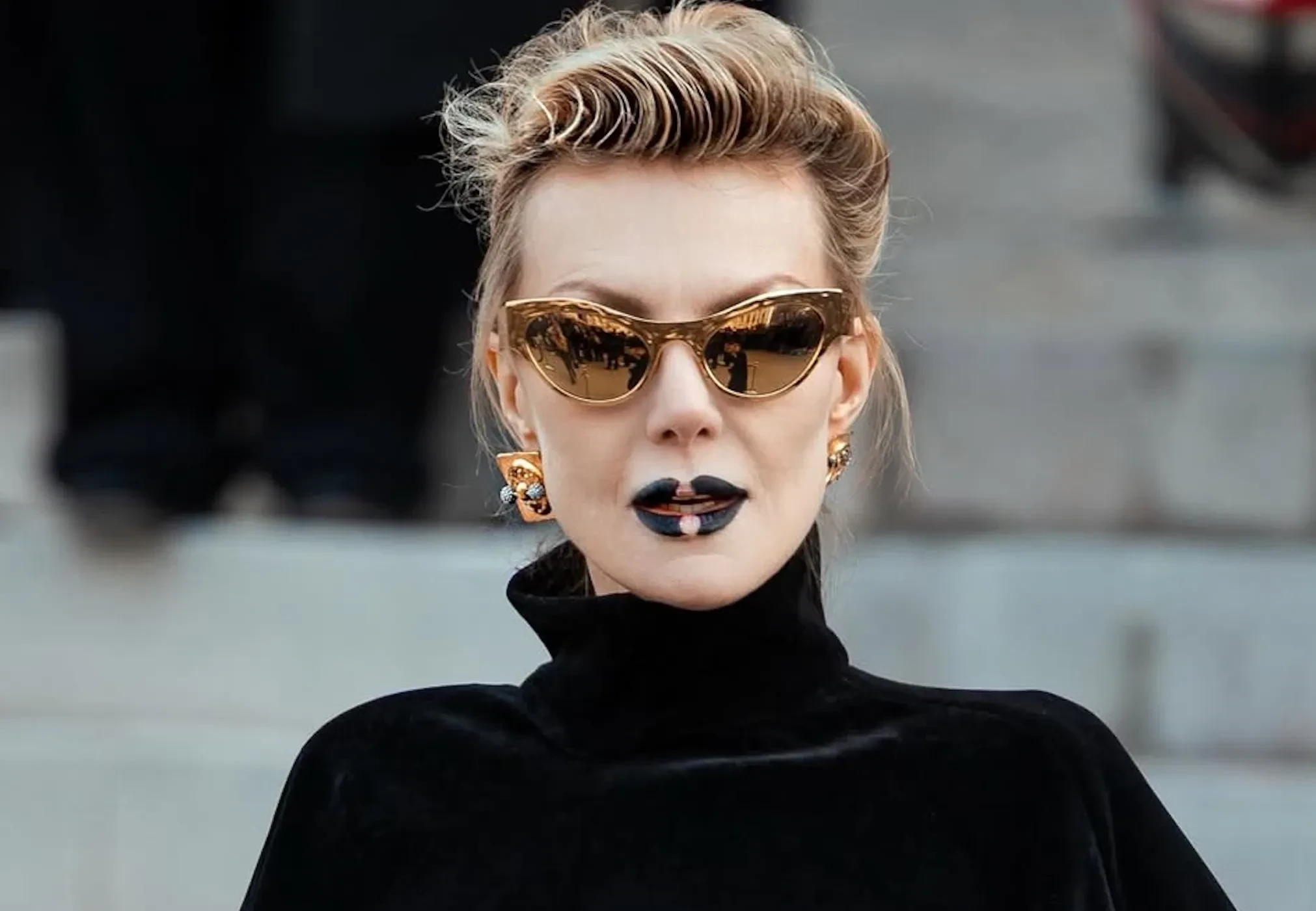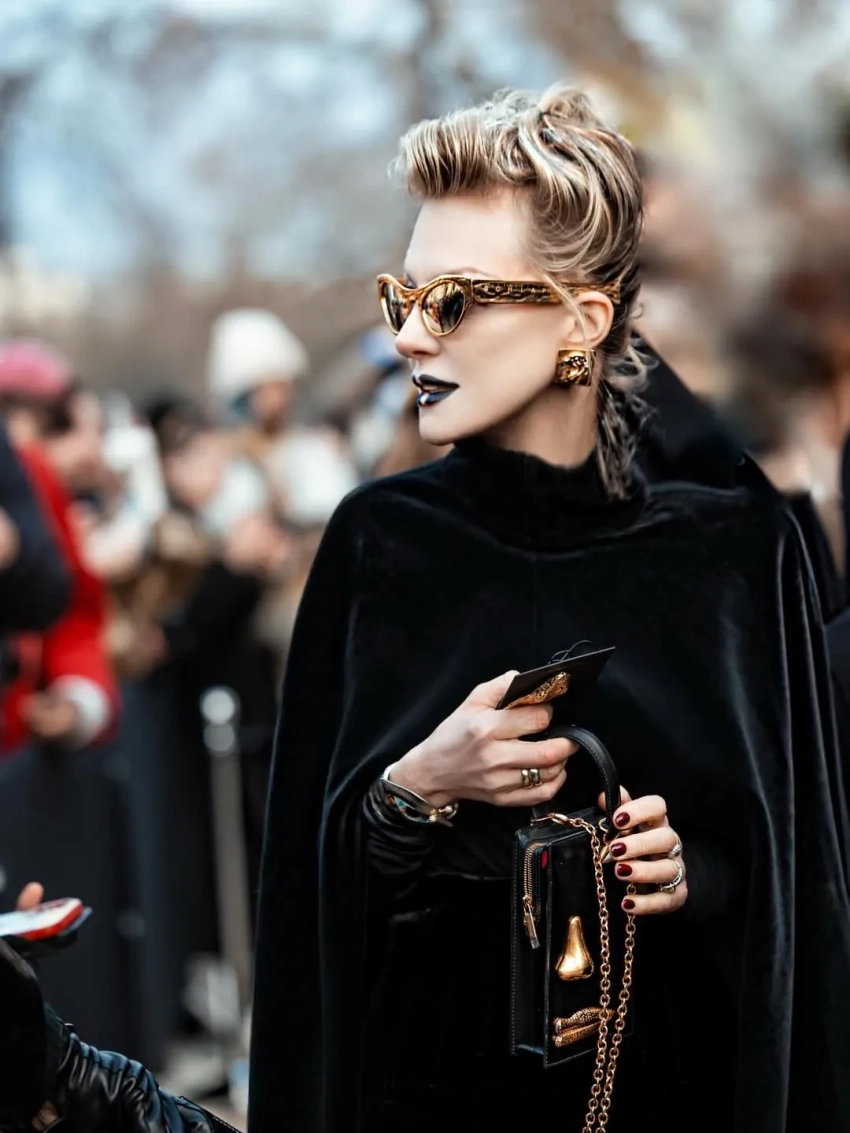 Рената Литвинова в чёрном кейпе и с макияжем в золотых тонах посетила шоу Schiaparelli, где встретилась со стилисткой Витой Клац. Снежанна Георгиева с дочерью Софьей посетили показ Valentino, где также были Оксана Бондаренко, Мария Богданович и многочисленные звёзды.