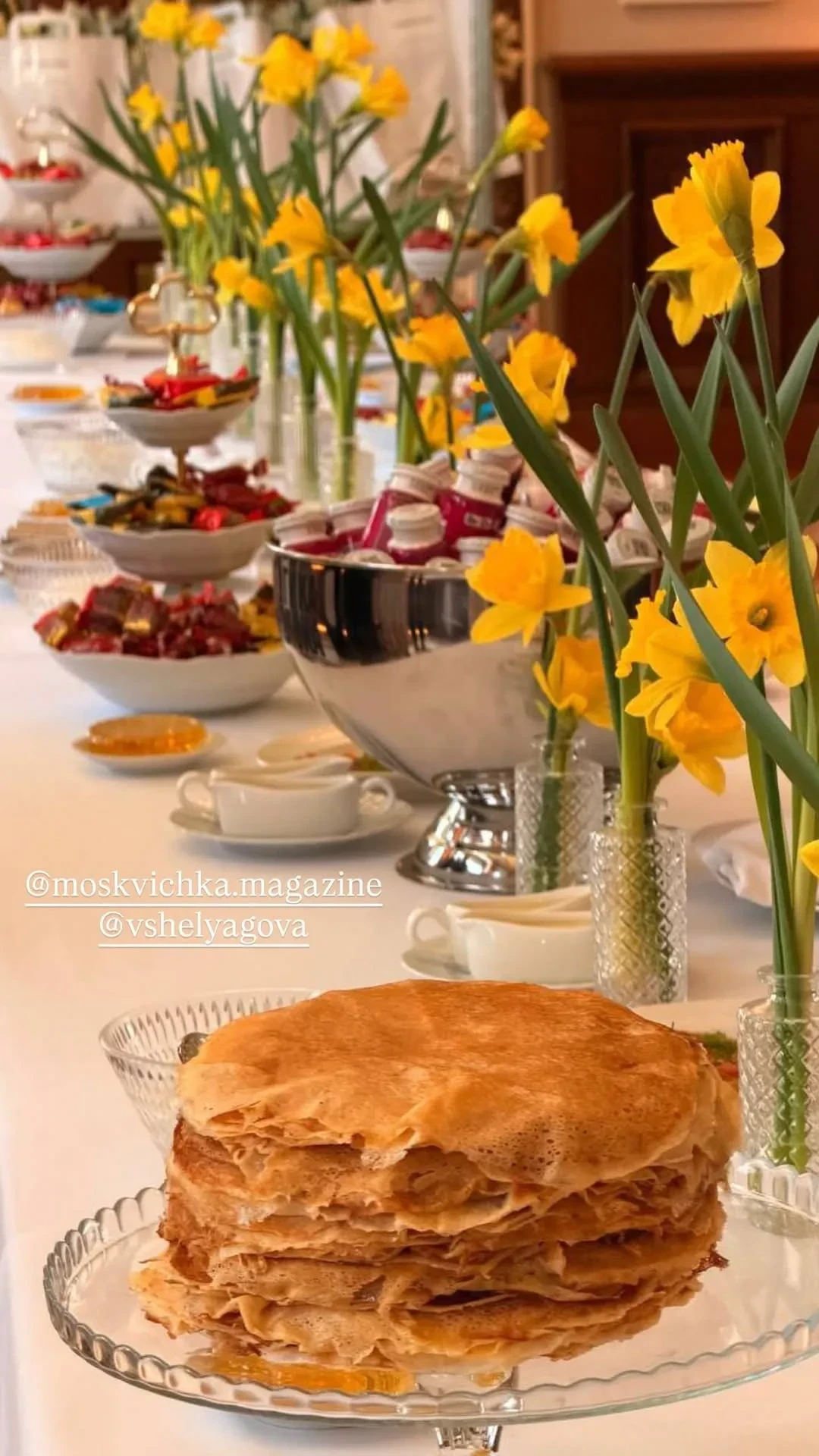 Блины, казачий хор и "жёлтый" дресс-код: Яна Рудковская, Андрей Малахов, Кристина Потупчик на Масленице Виктории Шеляговой в Savoy