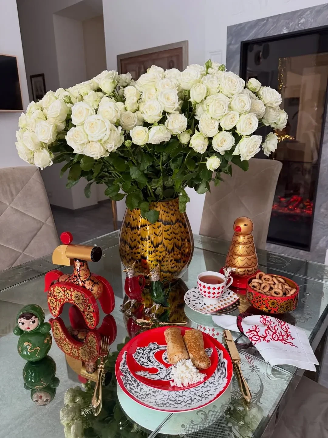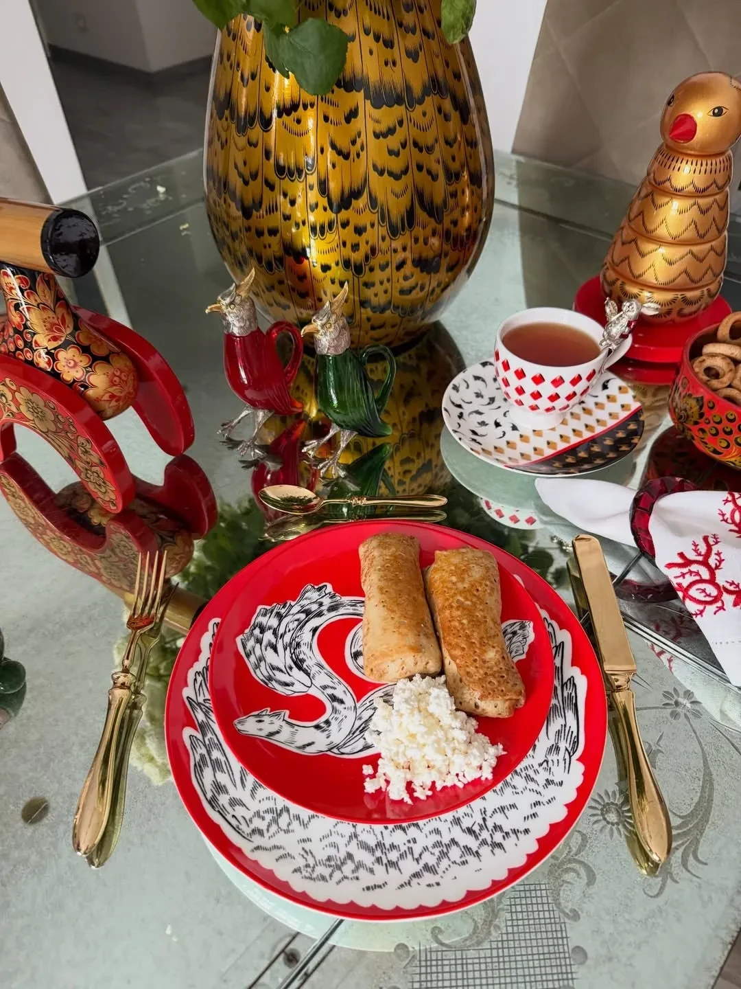 Виктория Шелягова накануне отгуляла Масленицу со звёздными друзьями в Москве. До этого светская львица показала, как встретила праздник в народном костюме, с блинами, чаем из сервиза и самовара. Тем временем Яна Рудковская свой праздничный стол блинами с творогом украсила золотыми приборами и игрушками с росписью.