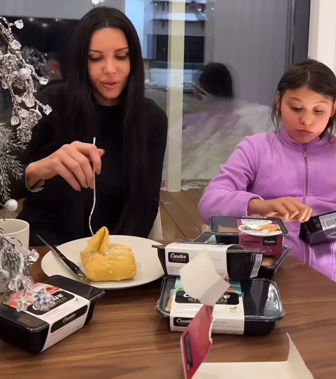 Фото Яны РудковскойНаталья Давыдова поделилась своими "ажурными" блинами, которые она готовит на кефире и холодной воде, а подаёт с клубникой на серебряном подносе. Почти бывшая жена Джигана Оксана Самойлова решила не тратить время на готовку блинов дома и заказала доставку, а Виктория Боня еле угодила своей дочери Анджелине, которой предложила сырники, но она хотела драники. В итоге мать и дочь сошлись на блинах.