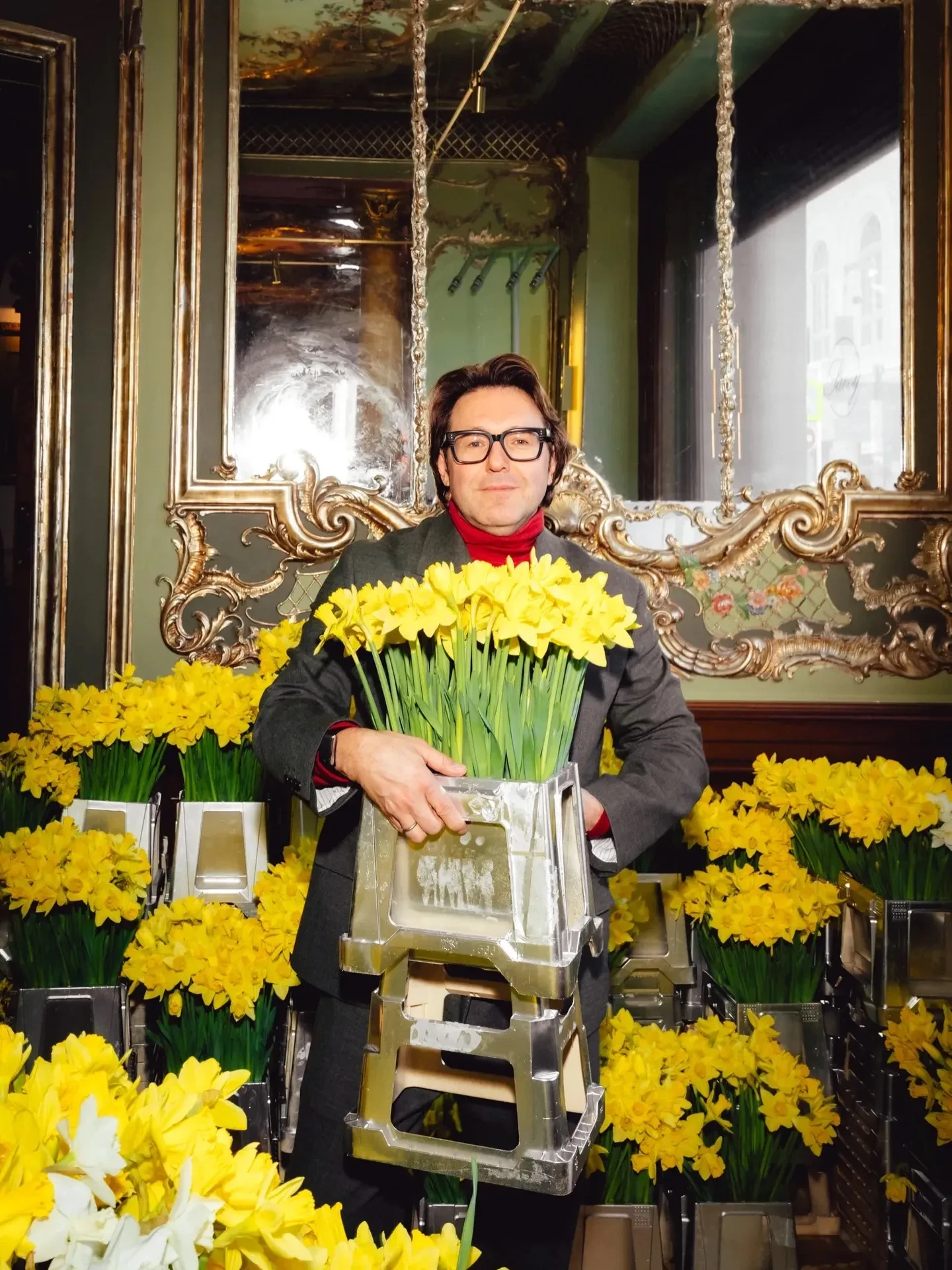 Праздничным дресс-кодом стали образы в жёлто-белой цветовой гамме, напоминающей о нарциссах, которыми было украшено всё пространство. Столы ломились от угощений: наряду с традиционными блинами и оладьями присутствующих угощали пирожками с мясом и капустой, соленьями, шоколадными конфетами и петушками на палочке, которые предлагали запивать травяным чаем и настойками.