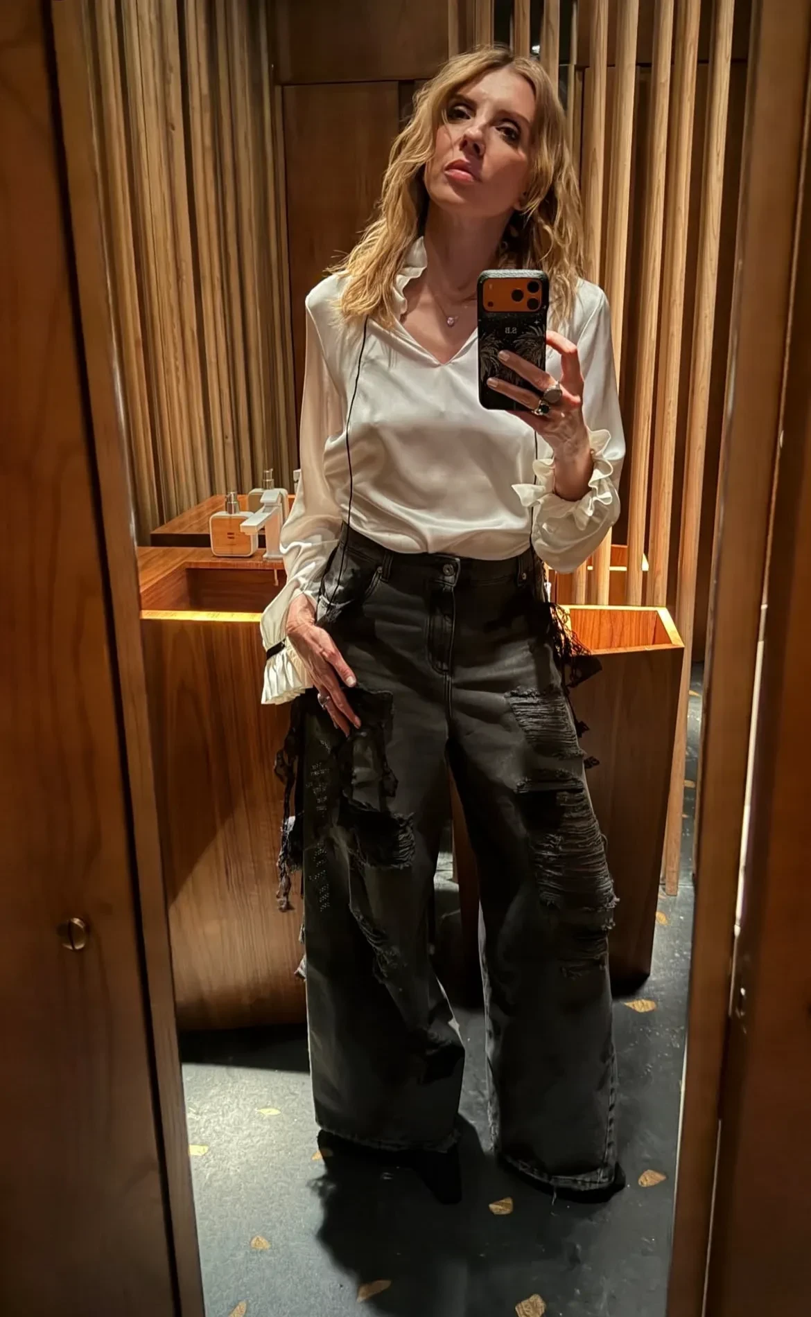 57-летняя светская львица Светлана Бондарчук пришла на ужин с друзьями в белой блузе и широких джинсах, а 40-летняя Ляйсан Утяшева позировала для селфи в наряде с цветочным принтом и солнцезащитных очках.