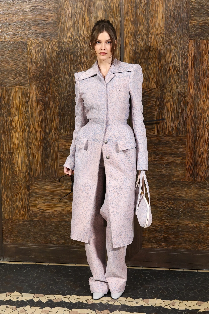 Утром звёзды собрались на показе Mugler. 57-летняя Наоми Уоттс позировала фотографам в кожаном топе и юбке цвета хаки, 39-летняя Елена Перминова — в коричневом боди и персиковой юбке, а 32-летняя жена Дилана Спроуса, модель Барбара Палвин, собрала наряд в нежно-лиловом оттенке: на ней было приталенное пальто и брюки прямого кроя, а в руках она держала сумочку в том же стиле.
