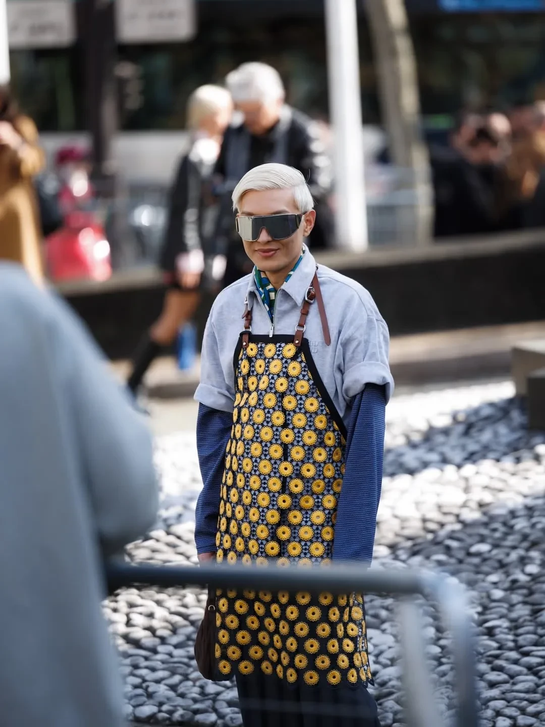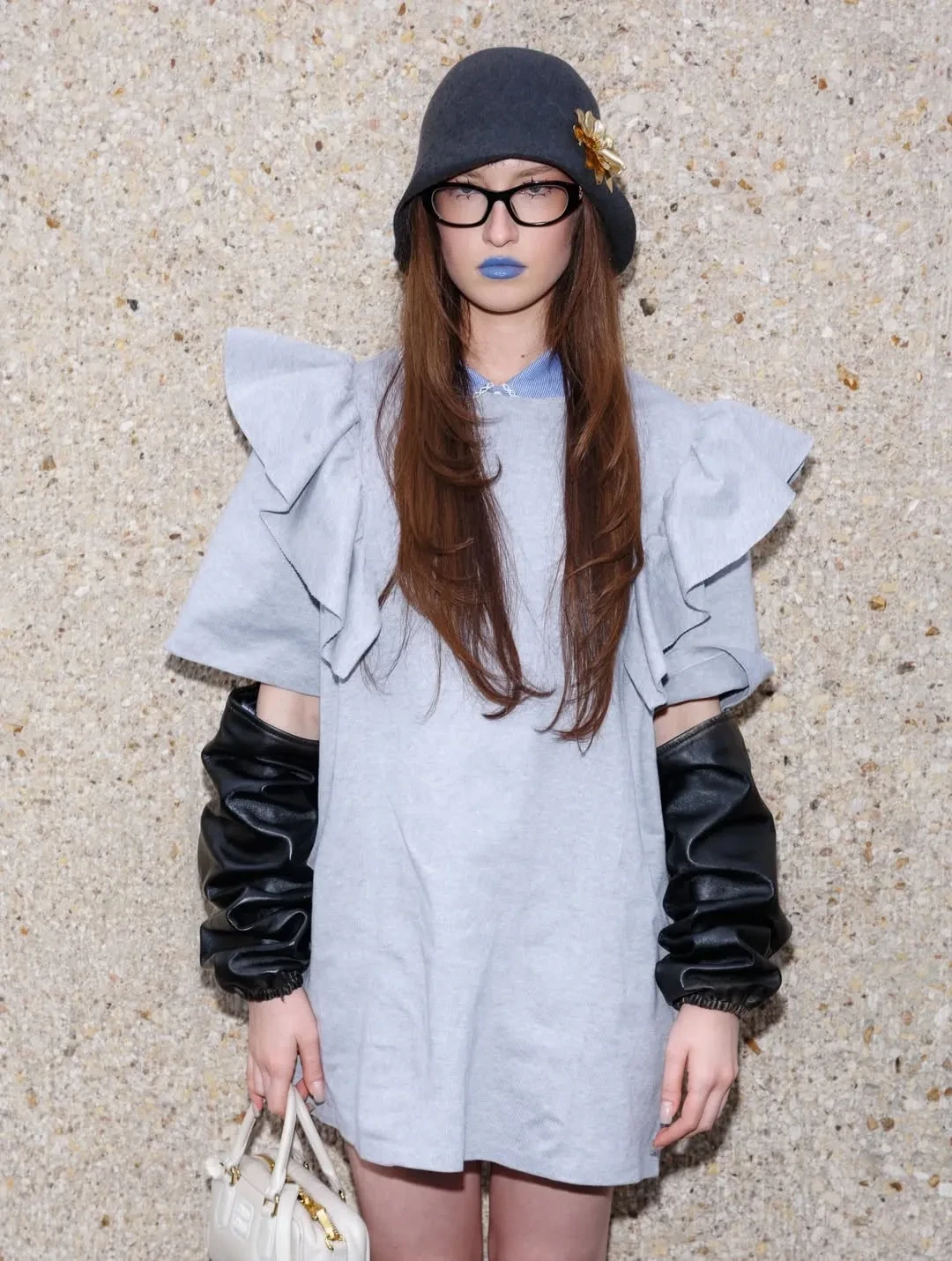 39-летняя Елена Перминова надела платье в "советском" стиле с цветочным принтом, а 37-летняя Оксана Самойлова пришла в мини-юбке и чулках. Ксения Шипилова примерила кожаный фартук из предыдущей коллекции бренда, посвящённой женщинам-рабочим и домохозяйкам.