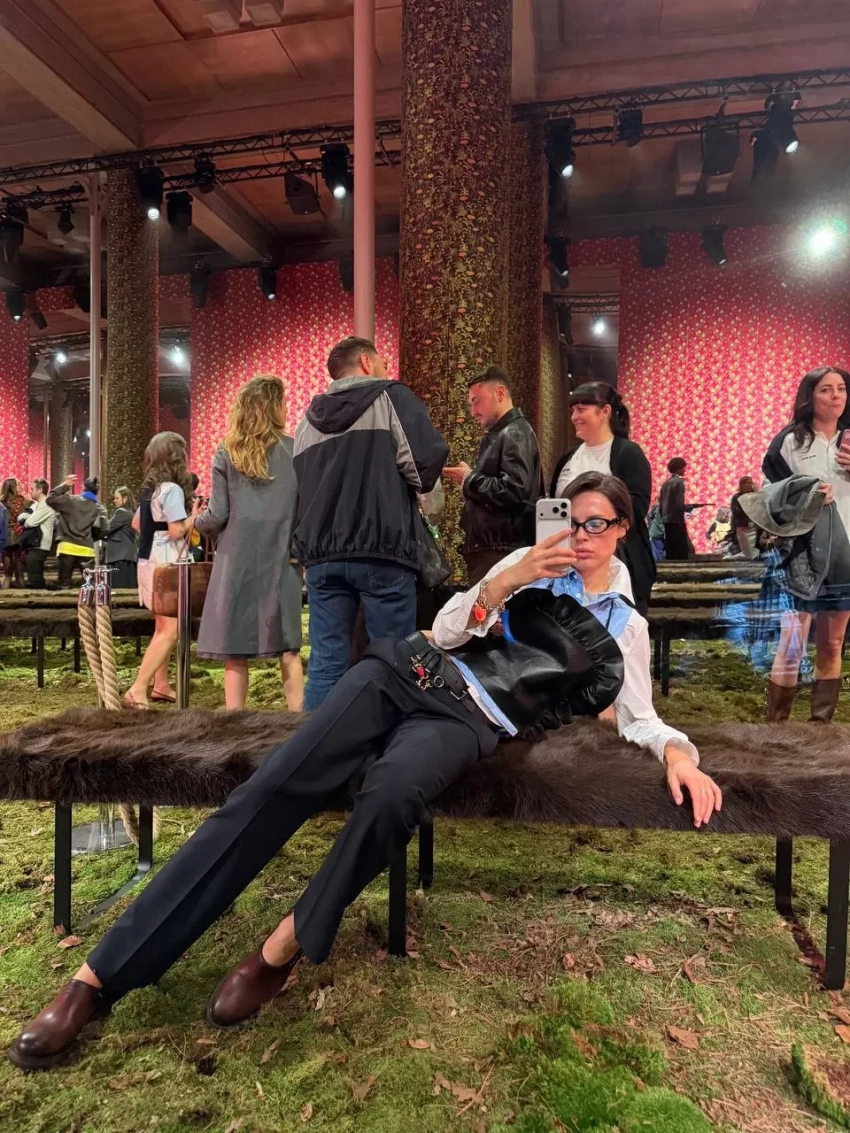 К слову, именно показом Miu Miu Шипилова "традиционно" завершила Неделю моды в этом году. Для шоу она выбрала строгие чёрные брюки, рубашку в белом и голубом оттенках, а вишенкой образа стал кожаный фартук из предыдущей коллекции бренда, посвящённой женщинам-рабочим и домохозяйкам.