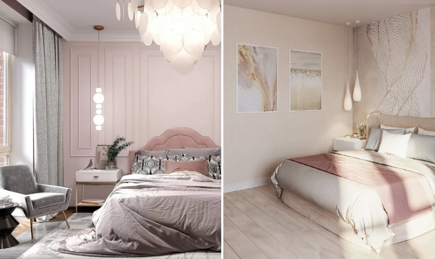 Теплые бежевые и песочные оттенки способствуют созданию уютной и теплой атмосферы, а такие цвета, как терракота и бордовый, привносят в спальню элемент романтики и тепла.
