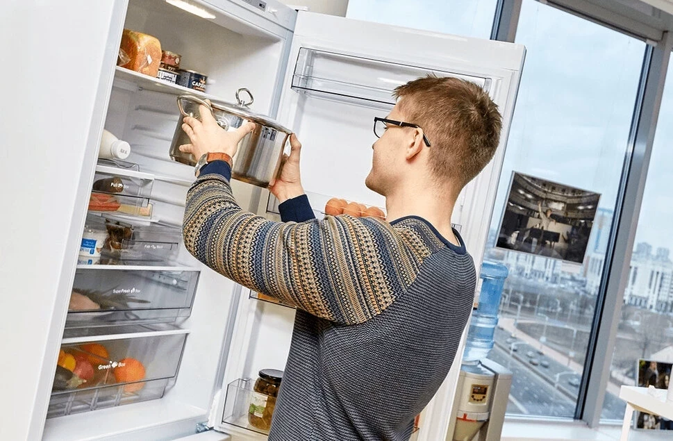 Если у вас модель без No Frost, пар от горячего блюда осядет влагой на стенках и превратится в наледь. Эта наледь ухудшает теплообмен, а значит — эффективность холодильника падает, он греется и изнашивается быстрее. И да, его придётся чаще размораживать. Приятного мало.