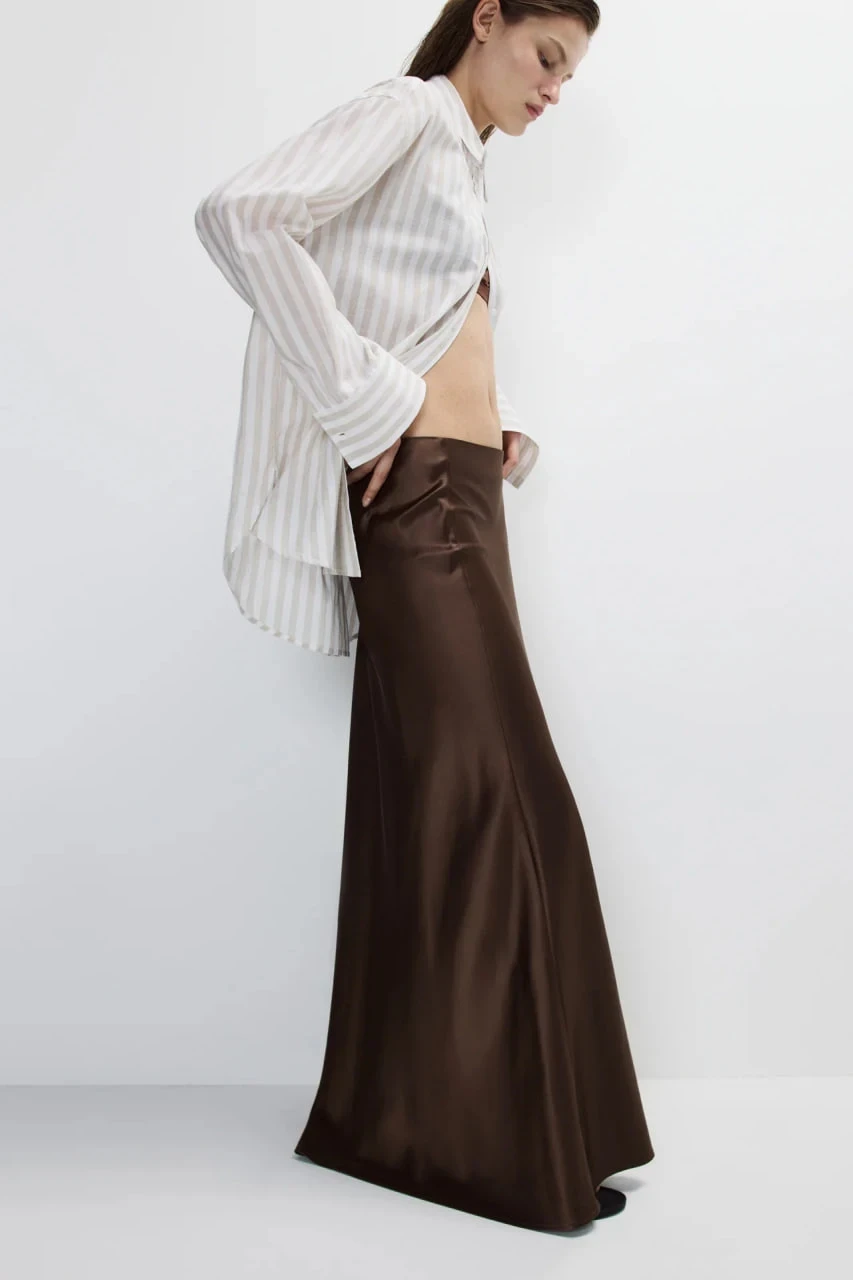 Лучше всего такие оттенки раскрываются на плотных фактурах: матовый бархат, рельефный жаккард, вискоза или гладкая костюмная шерсть. Они создают впечатление уверенного, продуманного стиля, где важна глубина, а не эффект.
