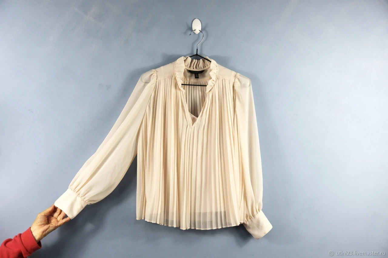 Не менее актуальными остаются и атласные ткани. Их мягкий блеск отражает свет и делает кремовый оттенок еще более выразительным. Особенно популярны модели с высоким воротником-стойкой, объемными рукавами или драпировками.