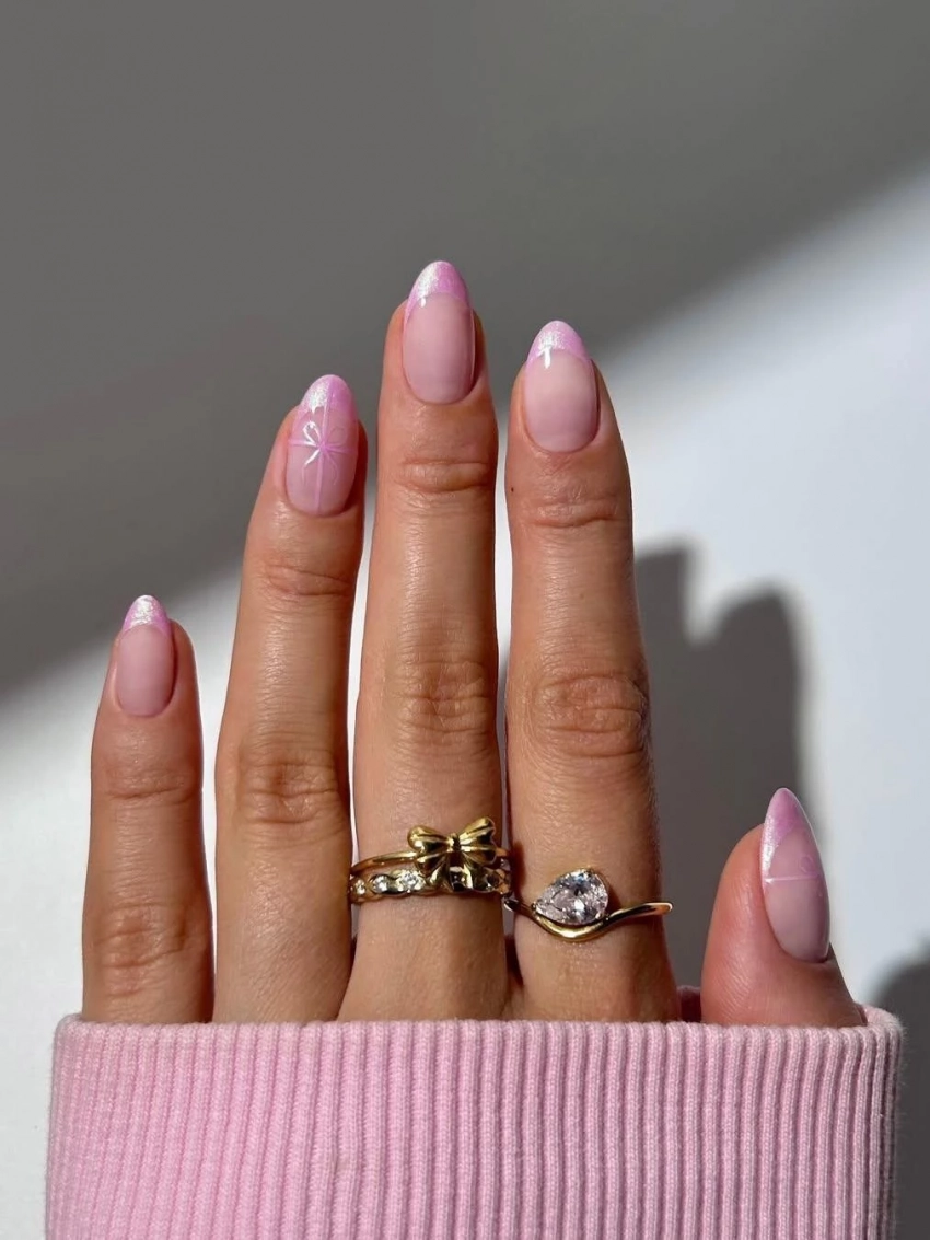 Молочно-розовый маникюр идеально подойдет любительницам нежных и элегантных образов. Чтобы добиться идеального результата, используйте лак с шиммером, нанося его в два слоя. Топовое покрытие добавит блеска, а небольшие украшения сделают дизайн еще более стильным.