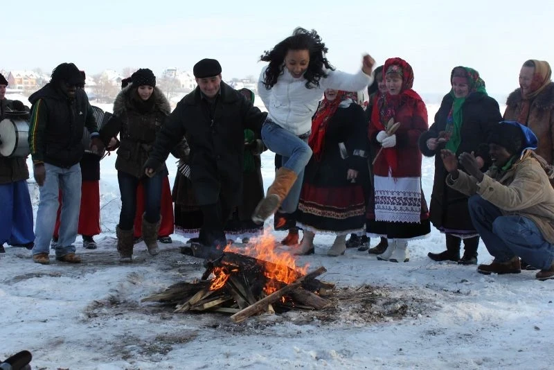 Не менее важным был ритуал изгнания черта из деревни. Житель, переодетый в сказочного персонажа, участвовал в шуточной «битве» и символически выводился за пределы поселения. На месте изгнания разжигали костёр, через который прыгали все жители, веря, что огонь приносит здоровье, счастье и поддержку высших сил.